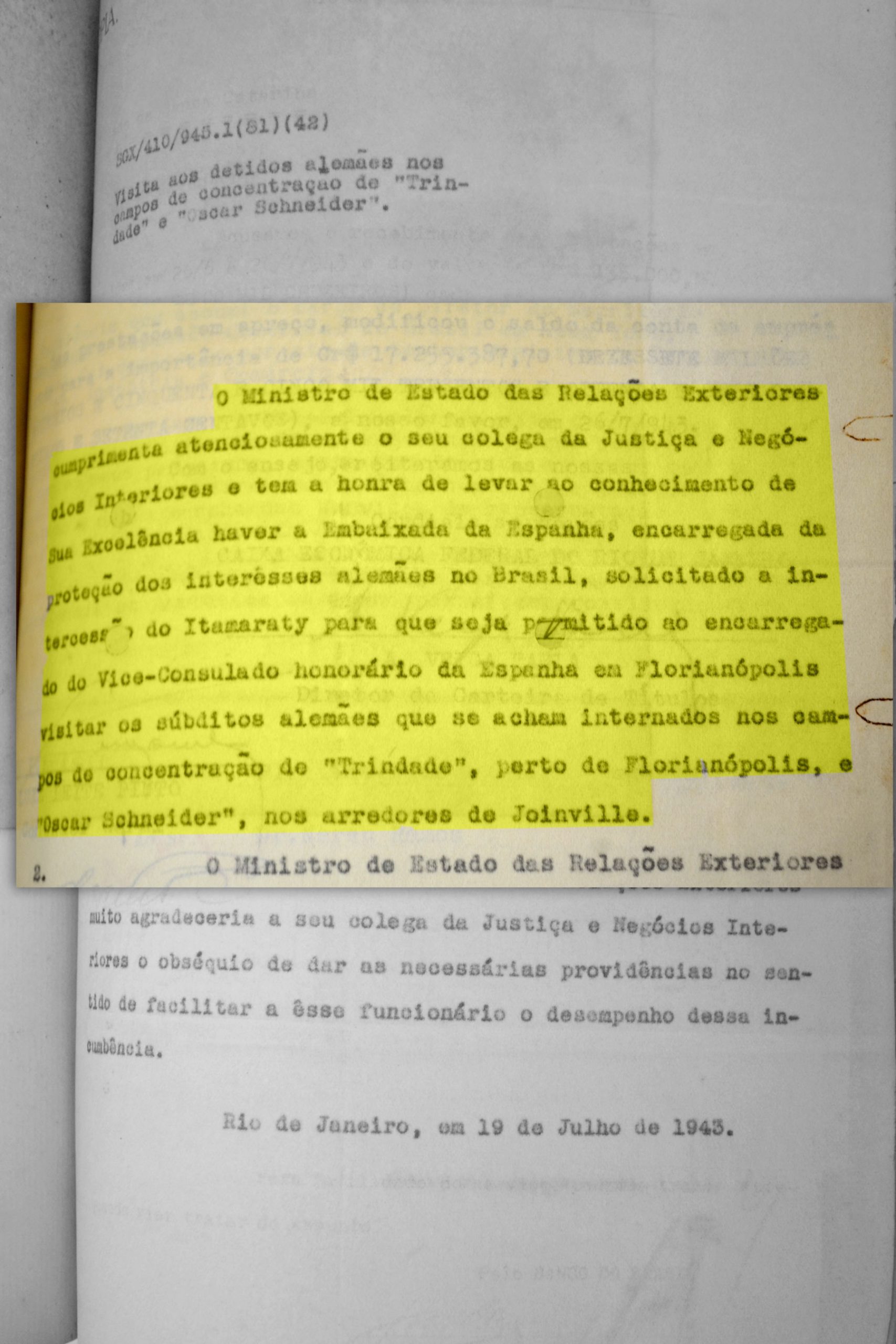 dos presos no campo de concentração de Joinville, relatório sobre os