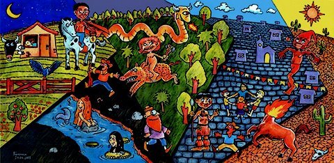 A palavra Folclore, segundo o dicionário significa conjunto das tradições, conhecimentos ou crenças populares expressas em provérbios, contos ou canções É um conjunto de mitos e lendas que as pessoas passam de geração para geração. Muitos nascem da imaginação das pessoas, principalmente moradores das regiões do interior do Brasil. Muitas dessas histórias foram criadas para passar mensagens importantes ou apenas assustar as pessoas. O folclore pode ser dividido em lendas e mitos. Alguns deles deram origem à festas populares, que ocorrem pelos quatro cantos do país.